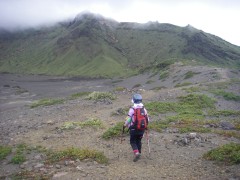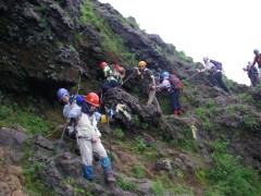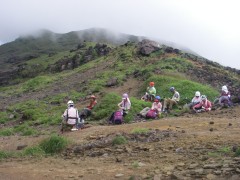 | 景色に見とれるメンバー | わずかな植物 | 高度を上げると眺めが最高 |
