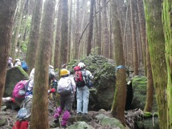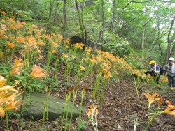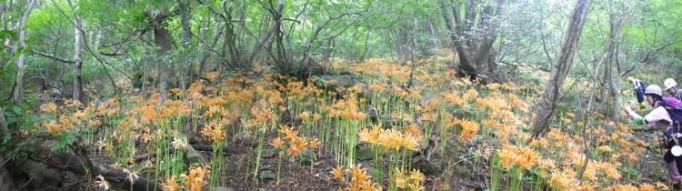 | 杉林の中、高度をあげる | オオキツネノカミソリの群生地 | |