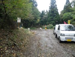 | 何やら重機のようだが・・・・ | 観察中 | 障子ケ岳へは通行止めで断念 |