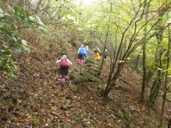 | 岳滅鬼峠 | 岩場が滑る | 集合写真 |