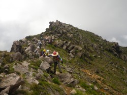 | 三俣山と硫黄山 | 岩場を歩く | |