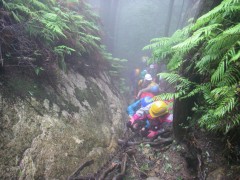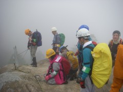 | 中岳の鎖場. | 安全確保 | 中岳の山頂に立つ会員 |