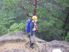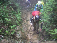 | 再び鎖場 | 夕陽岳山頂にて | ザイルワークの説明をする代表 |