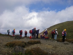 | 体操を終えてさぁ出発(先頭はCL) | 三俣山 | 一息の間、代表の話 |