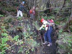 | 展望を味わう一行 | 雨ケ池までの降りは滑りやすい | 通称天ケ池 |