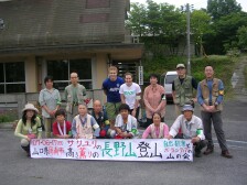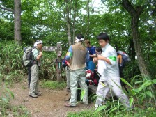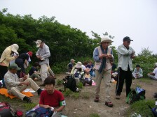 | にこやかに歩く一行 | 長野山山頂売店前にて | |