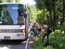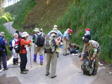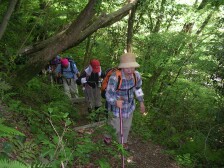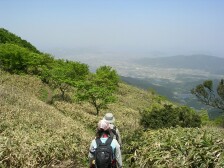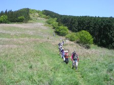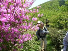 ●山行日:2007年5月13日 天気:晴れ ●コース:@瑞梅寺登山口−アンの滝−井原山−雷山−長野峠 A雷山登山口−雷山−長野峠 ※雷山で@A合流し昼食下山 下山後 温泉入浴(二丈町きららの湯) ●参加人数:35名 ●集合場所:苅田役場駐車場・小倉北口 ●バス中型 ●スタッフ CL山田、SL屋部(加)、写真係福嶋・清水、班長4名 フリー4名 (敬称略) ●行程:苅田役場(6:25)−小倉駅北口(6:55)−@瑞梅寺登山口(8:45)−アンの滝(9:45)−井原山山頂(11:20)−雷山山頂(13:00) A雷山登山口(9:20)−雷山山頂(13:00) 雷山山頂にて@コースAコース合流し、昼食後、下山開始−長野峠(15:00)バス乗車−きららの湯(15:55)−古賀SA(17:30)−小倉駅北口(18:30)−苅田役場(19:00) ◆最近のニュースでは、黄砂や光化学スモッグのため、屋外で運動を控えるようにと。「雨よ降れ!」の願いどおり前日に雨が降った。バスは井原山の登山口に近づく、これから登る山頂がはっきりと視界に入る。@コース18名で体操の後、点呼をとったのだが18名のはずが19名?アレと思ったらフリーのTKさんが「山田さん、最初に1番と言って最後に19番と言ってるよ」と最初から笑い。まずは渓流に添って進む。2、3度と沢を渡り返す。渓流の音、鳥の囀り、心地よく響く。約45分でアンの滝に着く。大きな岩盤にソーメンを束ねたようなやさしい流れ、一息つく名瀑である。その後少し急登が続くが新緑のあいだから仰ぐ空には雲一つない。時折、山藤の花が活々とした顔を見せる。井原山山頂直下にはコバノミツバツツジが群生している。そして雷山へと続く従走路では若葉の森と青空の間にミツバツツジや山藤、ブナの樹と飽きることがない。たまたま休憩をとった場所に1本のつげの木があった。自然が造りだす不思議さあふれた造形にただ見とれていた。登山口から約4時間で雷山山頂に到着。ここで早く着いているはずのAコースのメンバーは約3分遅れて到着。途中から藪コギで登ってきたが、そのおかげでめずらしいウラシマソウ等の草花を観察できたとのこと。メンバーは藪コギの体験を含め感動した様子だった。山頂で大展望を楽しんで昼食。下山は、スキー場の斜面を下って長野峠に向う。タラの芽、ウドなどの山菜やキンラン等の花を観察し、全員無事に下山。二丈町(きららの湯)で疲れをほぐす。帰りのバスでは恒例のビンゴゲーム大会、一口感想と大いに盛り上がり「また山へ行こう」と山病が悪化している様子だった。 CL山田 |