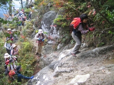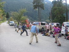 ●行程:R小倉駅北口(6:30)〜JR下曽根駅前(モール側)〜苅田町役場前〜太平楽〜 カメルーン・キャンプ〜杣の里渓流公園(11:10)〜御前岳山頂(13:08)昼食 (13:40)〜釈迦ヶ岳山頂(14:50)〜普賢岳(15:15)〜矢部越し(15:55)〜椿ヶ鼻ハイランドパーク(入浴)17:30〜山国〜太平楽〜苅田町役場前(20:50)〜JR下曽根駅前〜JR小倉駅北口(21:30)