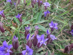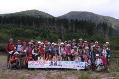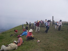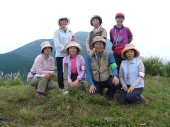 | 山頂は賑やか | リンドウが咲き乱れる | 涌蓋越付近で集合写真 |