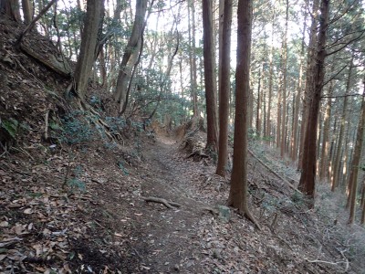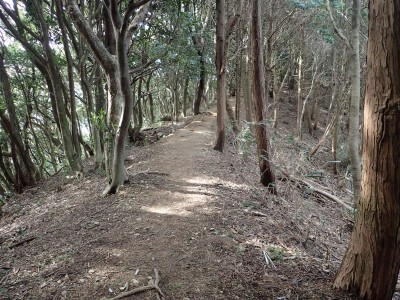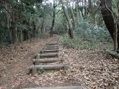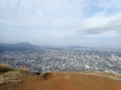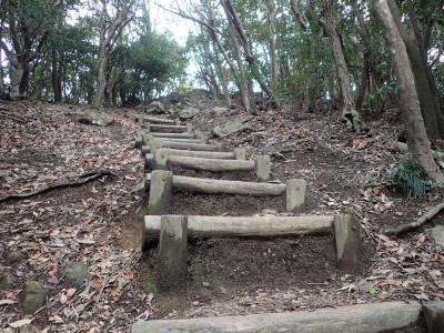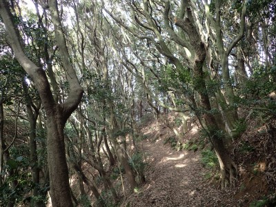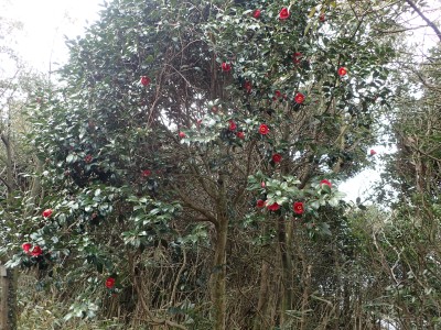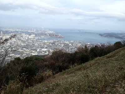 足立山は、子供の頃から登っていた山である。「登る」と言うか「遊んだ」と言う方が表現としては相応しい。この昔の思い出話は過去の日記に綴っていたので省略する。さて今日のルートはメモリアルクロス前の登山口から小文字山を目指し、稜線沿いに妙見山を経て足立山頂上に立ち、少し戻って今度は砲台山へと向かう。砲台山で足立山頂上部を眺めながら昼食をとり、下山は和気清麻呂公が創建したと言われる足立山妙見宮へと降る。そこから車道をしばらく歩き車道沿いの遊歩道に入り森林公園内をのんびりと歩きスタート地点のメモリアルクロス前に戻るという周回コースだ。(長い説明だが歩く距離はたいしたことはない)出かけるのが遅かったか、駐車場は満車状態。幸い散歩から戻ってきた人が乗車して帰るところだったのですぐに駐車できた。もちろん障害者用のスペースは、ちゃんと空けられていた。登山口からいきなり階段の急登が続く。歩き始めにはとても堪える。一服しながら小文字山に着く。風が強くのんびりする気分でないのでちょっとだけ休憩して出発。わずかのアップダウンの稜線歩きは椿の花が見頃だ。妙見山を目の前にして再び急登すると妙見神社上宮への道標がある。入り込むと拝殿前に出る。樹木に囲まれた窪地は水が溜まりやすいようである。鳥居をくぐり石段を降って分岐点より足立山頂上へと再び急登する。昔はこんなにきつくなかったのに・・・とブツブツ言いながら頂上に着くと関門海峡から皿倉山までのパロラマが広がる。あー来て良かった。これだから山をやめられない。しばらく眺望を楽しんで往路を戻り分岐点より砲台山へと向かう。名の通り昔砲台があったとのことでその史跡が残っている。砲台山は広々とした草地でここから足立山の頂上部を見ながらのランチタイムは最高だ。昼寝でもしたい気分になる。下山は、妙見宮へ降るが、大きく抉れた道は昔からの参道ではないかと気づかせる。和気清麻呂像に出ると車道を歩き、予定通り途中から遊歩道をのんびりと歩き無事駐車場に着く。今日も自然に山に感謝!!