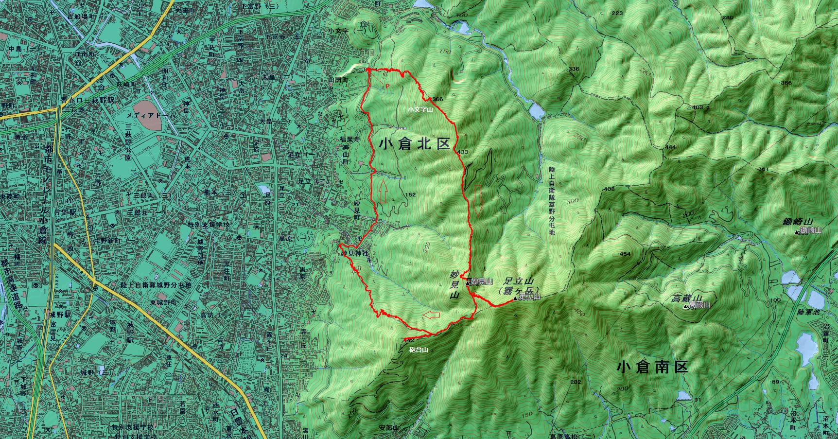 足立山登山コース(GPSによる歩行軌跡)