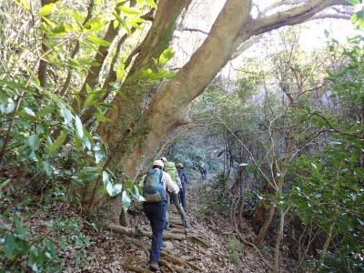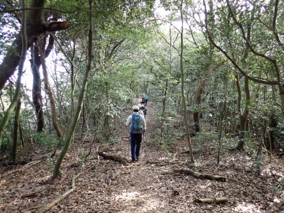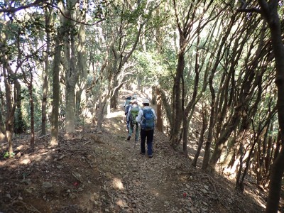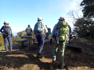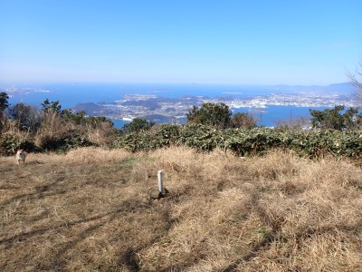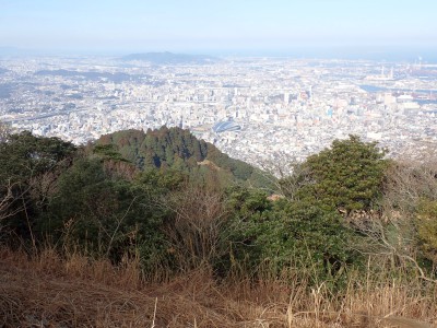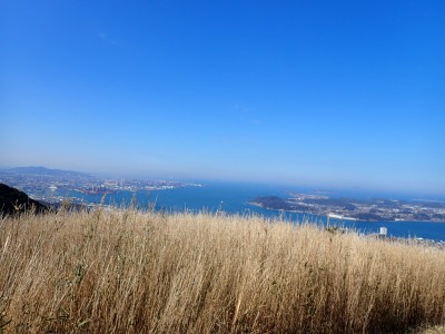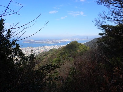 さてJR安部山公園駅からスタートしてまずは砲台山、冷たい風が強いのが気がかりだ。妙見神社上宮の分岐から足立山へ、苦しい登りだが、あっという間に頂上に着く。頂上は他の登山者もいて満員御礼となった。休憩しながら展望を楽しんでいよいよ縦走路を歩く。何度もアップダウンを繰り返し、長い縦走路をたまに遠望が開けると立ち止まったり休憩したりしていくつものピークをクリアしてゆく。そして大台ケ原に到着。青空が広がり、のんびりとテーブルでランチをと思っていたが強風で弁当を広げることができない。何とか手で抑えながら急いで食べる。結局のんびりはできなかったが、とてもきれいな青い海と空で胸も一杯になる。そしてクライマックス。戸ノ上山に最後の登り。途中から大台ケ原を見下ろすがなかなかのものだ。戸ノ上山頂上からは参道と降る。尾根から谷へと降り民家を抜け登山口(寺内登山口)。ここからは街の中を歩きJR門司駅に到着。今日は北九州マラソンで通行止めなどがあったようだが、ちょうど解除されていた。門司駅で一旦解散だが、せっかく電車山行なのでビールが飲みたい。ということで門司駅前に洒落たクラフトビール屋さんがあったので七人全員で乾杯をする。