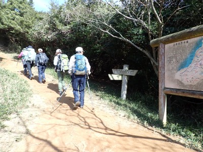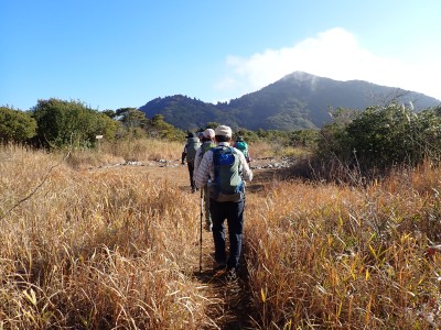 メンバーのリクエストでM氏が今回の臨時山行を企画してくれた。今回のルート、私としては過去何度か歩いたが、とにかく長くてきつい。しかし、小倉から門司までの山脈を「企救自然歩道」として整備されていてとても歩きやすく足立山から行くと戸ノ上山手前の大台ケ原はとても魅力的だ。草原の台地で眺めも良い。北九州市にもこんな素晴らしい所があるんだと得意げになってしまう。