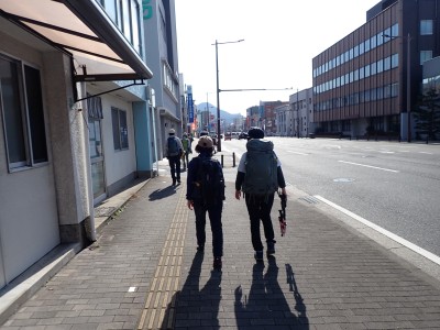 | JR安部山公園駅をスタート(8:00)、目の前に足立山 |