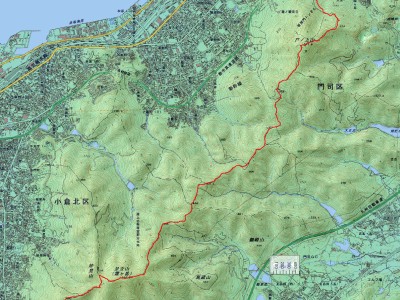 | JR安部山公園駅〜砲台山〜足立山〜富野山〜大台ケ原〜戸ノ上山〜寺内登山口〜JR門司駅 |