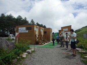 | 上諏訪駅からバスに乗車(09:50) | 車山肩のバス亭に着く(10:35) | バイオトイレは並んでいた |
