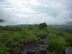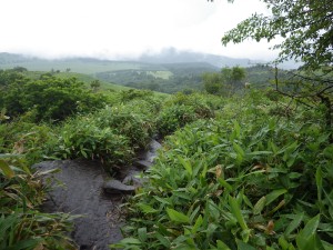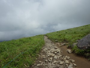 | ウスユキソウがたくさん咲いている | この辺りから景色が変わる | 雨が降ったり止んだり |
