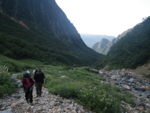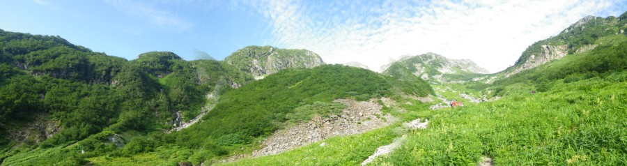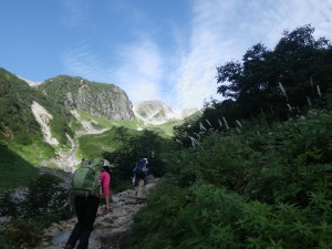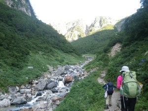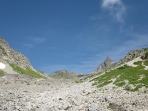 | 五郎沢を通過 | 前方が開けてきた | 槍沢大曲り |