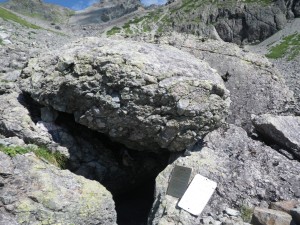 | 槍ケ岳は本当に尖がっている | 坊主岩屋下(右にヒュッテ大槍) | 播隆窟 |
