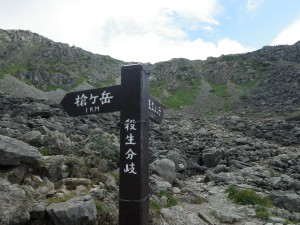 | 殺生ヒュッテ | 殺生との分岐 | 槍ケ岳を背に |
