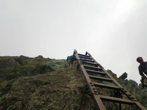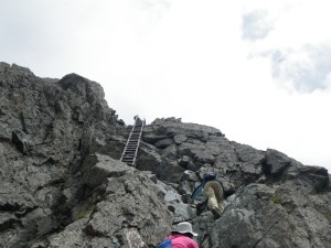 | 梯子が見えた | 思ったより錆びていた | 2つ目の梯子を登ると頂上 |