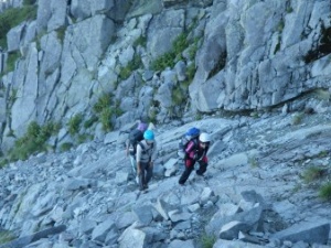 | いきなりこれを登る | 山荘を後に | 最初から厳しい |