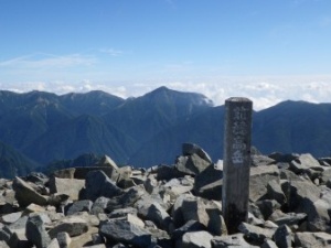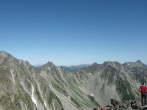 | ▲奥穂高岳から槍ケ岳を見る | ||