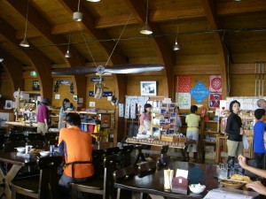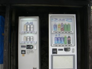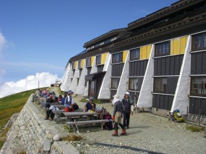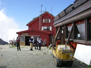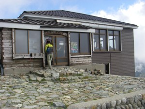 | 白馬岳頂上宿舎で昼食を摂る | なんと自動販売機だ | 宿舎を振り返る |