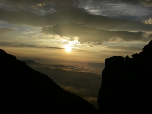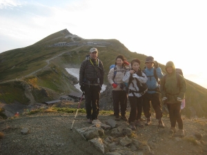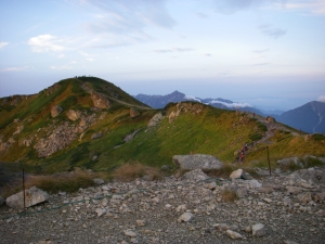 | これから歩く縦走路 | 宿舎のテント場 | 朝焼けがきれいだ |