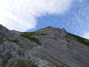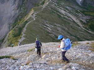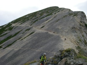 | 昨日歩いた大雪渓を見下ろす | 結構上るなぁーと口に出る | 高度を上げる |