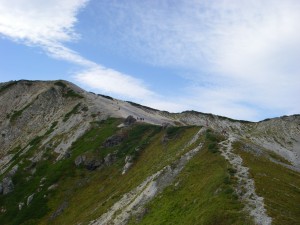 | 白馬鑓ケ岳 | 振り返る | 登山道は稜線沿いだ |