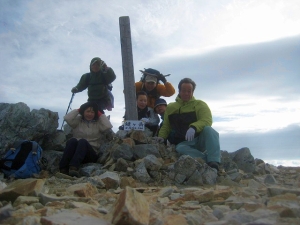 2010年9月19日 天気 曇り時々晴れ 遊山歩9月度例会登山は、九州からはるばる長野県まで来た。年に一度の遠征登山だ。昨日は白馬山荘でたっぷりとビールと睡眠をとったので今朝は快適な朝を迎えた。朝食を済ませお湯をテルモスに詰め午前6時に出発。今日は不帰キレットを体験できるので楽しみだ。 ※昨日の日記に戻る <コース詳細> 白馬山荘から一本道の稜線歩きなので迷うところはありません。平坦な尾根から一旦急斜面を降り、再び石ころだらけの斜面をジグザグに登ると杓子岳頂上です。もちろん遮るものはありません。白馬岳も遠くに見えます。小石を積み上げたような(この景観と言うか様子には驚きました)山のなだらかな西斜面を下り、登り返すと稜線に出て再び急斜面をジグザクに登ると白馬鑓ケ岳(はくばやりがたけ)頂上です。白馬三山と言われている三つ目の山です。南にこれから目指す山々が見えます。振り返ると白馬岳がずいぶんと離れて見えます。風が強いので長居はできません早々に下り始めます。鑓ケ岳の西斜面を下ると稜線に出ます。白馬鑓温泉(はくばやりおんせん)への分岐点を見てなだらかな上りをピークに向かい歩きますが、途中で天狗山荘への標識があるので左に下ります。山荘は目の前です。雪が残っていてその雪解け水でジュースなどを冷やしていました。ビールがおいしそうです。・・・・がまん。もちろん登山中は禁酒の私です。静かな山荘で一休みして出発です。稜線の西側をしばらく歩きます。ピークが現れてきて緩やかな坂道を登りつめると天狗の頭です。ここからゆるやかな下り道となります。岩の多い痩せた稜線をしばらく歩くといよいよ天狗の大下りです。鎖が要所に設置されています。さほど危険とは感じませんが、落石に注意です。自分が注意していても後から来る登山者が、足でも滑らすと落石してきます。長い下りが終えると西斜面の大きな岩場の上りとなります。稜線に出てしばらく緩やかな上りを歩くと目の前に荒々しい岩の峰が立ちはだかります。「え!これ登るの?」と思わず声が出てしまうほどの絶壁です。 ページへ |