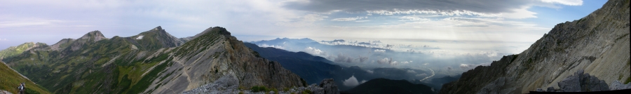 | 雲海もきれいだ | 白馬岳の山頂部が見える | 急斜面を降る |