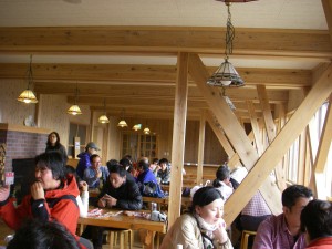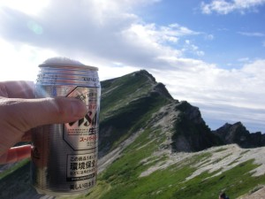 | 山荘から唐松岳頂上を仰ぐ | ビールで乾杯 | 食堂 |