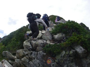| 左のピークが南峰 | こんな岩がたくさんある | 両手もフルに使う |
