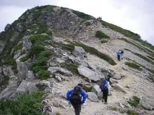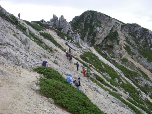 | 空は鱗雲が・・・・・ | 岩場が続く | 不帰二峰の北峰 |
