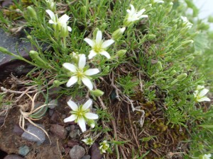 | ここで記念に | タカネツメクサ(高嶺爪草)ナデシコ科 | ハクサンイチゲがたくさんある |
