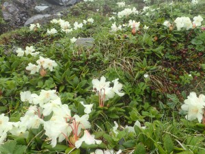 | チョウノスケソウ(長之助草)バラ科 | キバナシャクナゲ(黄花石楠花)ツツジ科 | アップで |