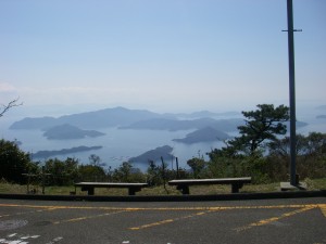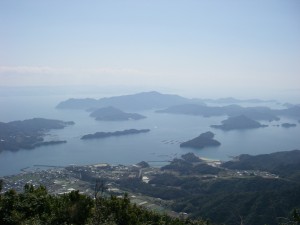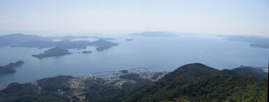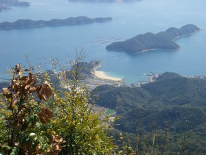 | ▲矢筈岳山頂から八代海を見渡す(左は御所浦島) | ||