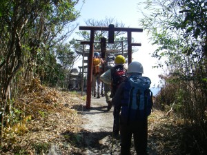 | 林道(作業道)に飛び出る | りっぱな鳥居がる | 山頂です! |