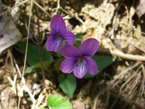 | 正面に倉岳 | のんびりと歩く | スミレの花見っけ! |