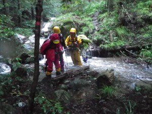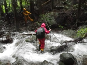 | 結構流れがある | 急斜面をよじ登る | ザイルを渡して渡渉する |