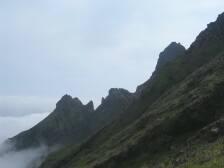 | 虎ケ峰、鷲ケ峰 | 天狗の舞台(この上は広い) | 奥のピークが高岳(天狗の舞台より) |