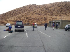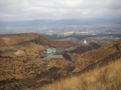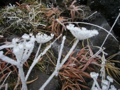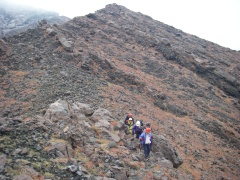 2009年12月6日 天気曇り 自然観察とボランティア山の会の1月例会登山は阿蘇高岳の予定である。今日はその下見ということでいつものようにチューさんの車に7名乗車し、小倉をAM5時半に出発して仙酔峡に着いたのは9時を過ぎていた。今日はかなり寒く高岳はガスっている。山頂まで行けるかどうか・・・・・ 準備をして出発である。(トイレがきれいなっていた。) コースは仙酔尾根(バカ尾根言われている)をひたすら歩き高岳から中岳へと回りロープウエィ沿いに降りてくる計画である。ところが山頂手前で風が強く、あまりに寒くておそらく山頂はもっと強いだろうと予測できるため登頂を断念することにした。また、この尾根は溶岩でデコボコしているのでおそらくアイゼンでの歩行にも苦労するということで来月の例会登山は、場所を変更することになった。来る途中、九重を通ってきたのだが、その樹氷の素晴らしさに全員一致で「やっぱり九重にしよう」となった。と言うことで今日の高岳は途中で断念となった。 おわり |