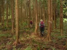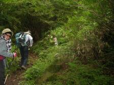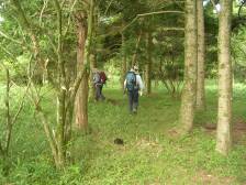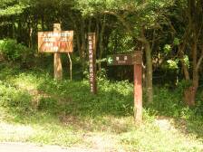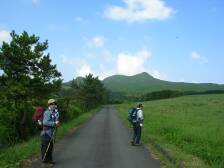2006年8月15日 晴れ 今年の夏はとにかく暑い。暑い中、山歩きをするということは自分でも「もの好きやなぁ」と思う。 今日は自然観察登山の下見ということで阿蘇鞍岳を歩くことになった。本番には諸事情で行けないが、役柄上、行くことにした。やはり1000m以上になると若干、涼しいようだ。 鞍岳は、その名の通り、山の形が馬の鞍のようなのでその名がついた。 アクセス(マイカー) 国道212号線で日田から杖立温泉を抜け南小国町の先(大観峰手前)より阿蘇スカイライン(ミルクロード)を西に向う。道は南に向かい「かぶと岩展望所」を過ぎ、「狩尾牧場」を過ぎた先を右折(鞍岳が遠くに見えるので分かると思う)舗装された車道を行く。途中、鞍岳の小さな標識がある。乗用車であればそのまま山頂直下の駐車場まで行ける。 高速であれば熊本ICから国道57号線で赤水温泉まで行き、ミルクロードへ抜けるのが便利(但し、季節によっては渋滞の可能性あり) 今回のコース 今回は大型バスを想定してバスがUターンできる場所まで行き、そこから車道歩きをすることにしました。車道とは言え、ほとんど車の往来はありません。鞍岳とツームシ山全体を見渡せるのもこの場所からです。道脇の花々と景色を楽しみながら約20分でツームシ山登山口の標識がある場所に着きます。この先も舗装されたきれいな道が続きますが、この辺りから鞍岳への道はないものか、散策することになりました。振り返ると西側に林道らしきものがあるので試しに行きます。※注意、この道は途中でなくなりますので参考にしないでください)7〜8分程度歩くと右手(鞍岳へ向って)に別れ道があったので入ります。地図とコンパスを確認し、高度をあげて行きますが、途中で道がなくなります。ここまで来るともどるわけにもいかず、地図を確認しながら歩くこと約30分、車道にでました。どうも本番では車道を歩くしかないようです。少し歩くと右手に登山口の標識がありました。ここより山道を行きます。登山道は整備されていて標識がたくさんあります。すぐに「大山祇の神(おおやまづみのかみ)」が祀られている場所に出ます。さらに高度をあげるとT字路にぶつかります。ここは鞍岳と馬頭観音との分岐です。今回は先に女岳に行くので鞍岳の方に進みます。緩やかな林の中を抜けると右に鞍岳山頂、左にアンテナが見える女岳との分岐に出ます。女岳へは緩やかな上りを5分程度歩くと山頂です。山頂は展望も良く広々としています。展望を楽しんだら馬頭観音へ来た道を戻ります。途中、崩落があったようで道が途切れていました。危険なので本番はこのコースは避けることにします。危険箇所を過ぎ、すぐに左手(山側)に直登コースと書かれた小さな標識があります。落石注意ともかかれています。馬頭観音へはここよりかなり下らないと行けないようなのでここより山頂を目指します。10分程度急登に喘ぐと山頂です。山頂は360度の展望ですが、狭いので昼食時は混むことが予想されます。今日は3組のパーティが昼食を楽しんでいました。私たちもここで食事です。トンボや蝶がたくさん飛んでいてなんとも言えない風情ですが、弁当に蝶が止まろうとしてややうるさく感じました。 次ページへ |