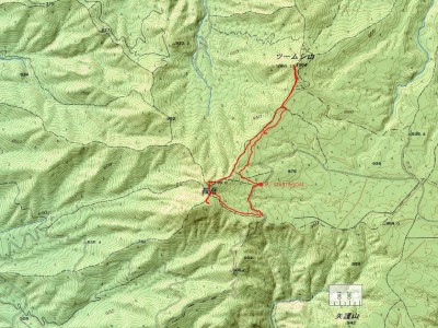 東登山口-(23分)-女岳-(10分)-鞍岳-(50分)-ツームシ山--(40分)-林道-(10分)-東登山口 ※休憩含まず。全行程で約3時間でした |