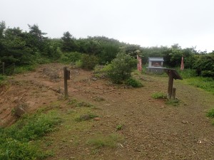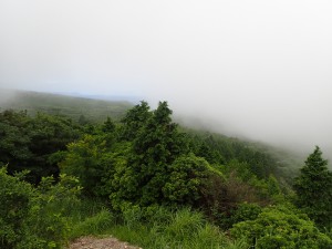 | ガスがなければ眺めが良いだろう | 地蔵峠(9:19) | ちょっとだけ民家が見える |