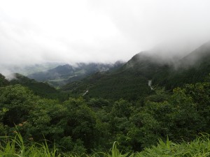 平成30年7月21日(土) 天気小雨 ■出発時間:午前6時頃(熊本市内のホテル) ■メンバー:単独 昨日は、出張で熊本で宿泊した。小倉からだと新幹線で1時間程度なのだが、帰路に立ち寄るところがあるため移動は車を使うことになった。となれば、せっかくなので山を歩こうとなるわけだ。 先日の大雨で通行禁止の道路ももたくさんある。ナビは、便利で通行止めの場所を迂回してくれる。頼りある助手だ。 目的の山は、南阿蘇の南外輪山最高峰「大矢野岳」だが、短い距離なので外輪山を適当に歩く計画だった。 しかし、快晴だった市内から出発地点の地蔵峠に着くとガスが立ちこめていてさらに大矢野岳辺りでは雨粒が大きくなり、視界も悪く、期待の眺望は全く望めず、面白くないので大矢野岳から引き返すことにした。残念。 気温はさすがに低く、ホテルを出たときは、車の外気温は既に30度を示していたが、24度であった。霧雨状態なので半袖では少々寒いくらいだった。 駐車場に着くと車が2台止まっていてこれから出発するようである。 山にかかった雨雲は、しばらく居座るようだが・・・・ 帰りは、のんびりと車を走らせた。 ■コースタイム 地蔵峠P-(7分)-地蔵峠-(26分)-大矢岳-(20分)-大矢野岳-(19分)-大矢岳-(20分)-地蔵峠-(5分)-地蔵峠P ※休憩時間含まず。全行程で約2時間。歩行距離4.5km 標高差189m |
