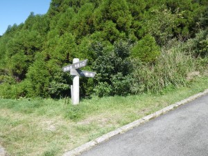 | 右は車道 | 杵島岳登山歩道とある | 先の標識を左に進む |