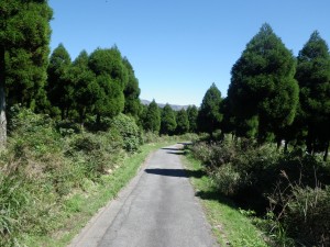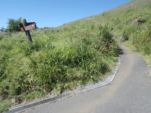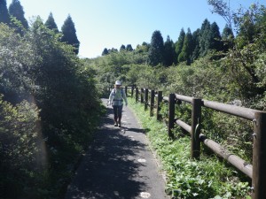 | 杵島岳はここから登った | 右手は車道 | 遊歩道終点、火山博物館へと |